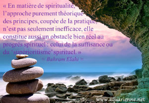 « En matière de spiritualité, l’approche purement théorique des principes, coupée de la pratique, n’est pas seulement inefficace, elle constitue aussi un obstacle bien réel au progrès spirituel : celui de la suffisance ou du « supérioritisme » spirituel. » - Bahram Elahi. Conditionnement et images de soi Les images toutes faites sur la spiritualité sont nombreuses. Pour certains il faudrait s’habiller de telle façon, pour d’autres ne pas consommer certa...